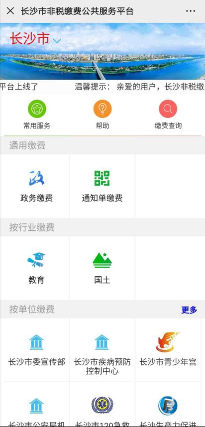 第二步:进入“长沙财政”公众号选择“非税缴费”栏目